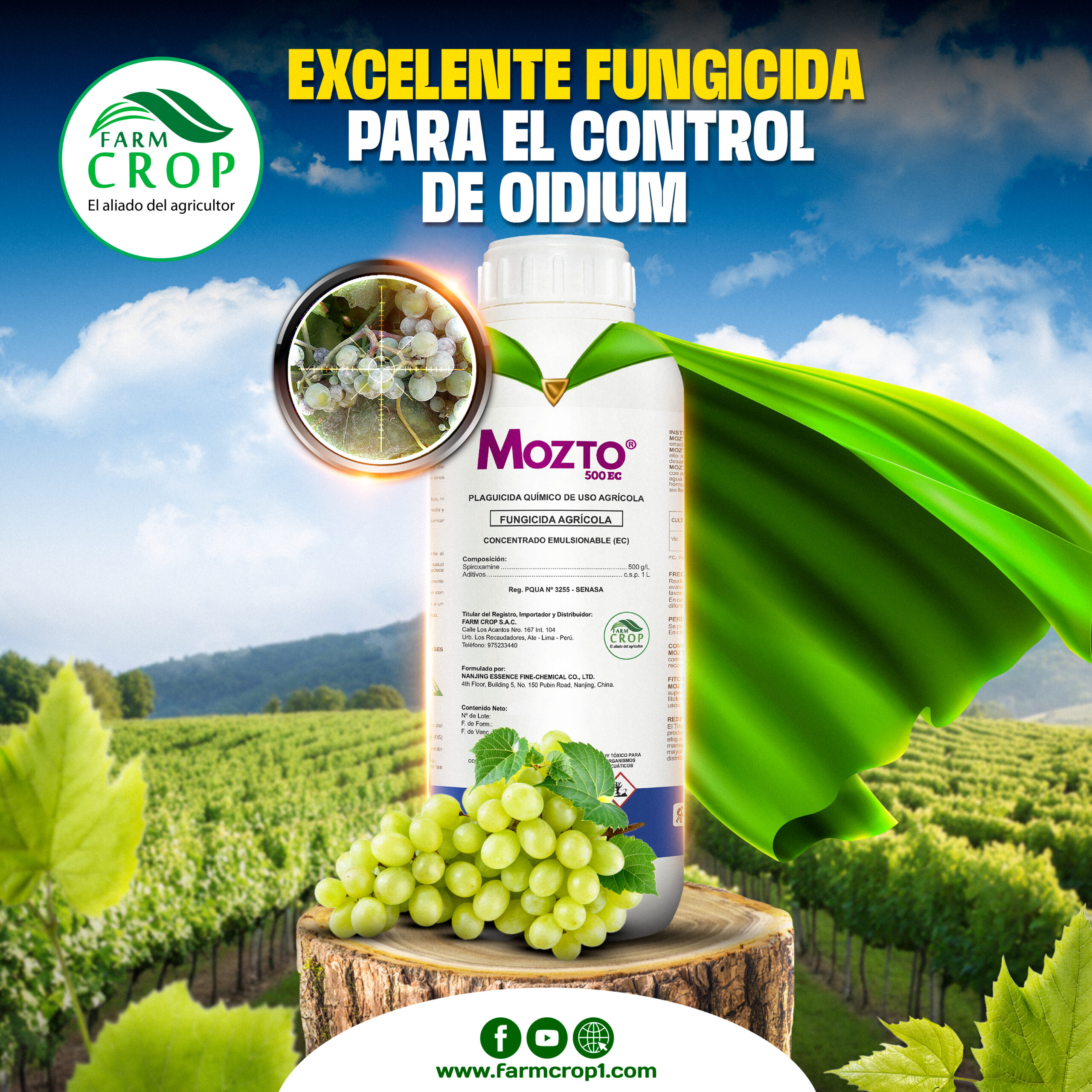 ESTRENO (Tebuconazole 250g/L) Ficha Técnica Hoja de Seguridad Hoja de Venta MOZTO® 500 EC (Spiroxamine 500g/L) Ficha Técnica Hoja de Seguridad Hoja de Venta FLEES 360 SL (Hymexazol 360g/L) Ficha Técnica Hoja de Seguridad Hoja de Venta OPERATIVO® 750 WG (Tebuconazole 500g/K+Azoxystrobin 250g/Kg) Ficha Técnica Hoja de Seguridad Hoja de Venta GAMONAL 380 WG (Boscalid 252g/Kg + Pyraclostrobin 128g/Kg) Ficha Técnica Hoja de Seguridad Hoja de Venta PRADEL® 300 WP (Triflumizole 300g/K) Ficha Técnica Hoja de Seguridad Hoja de Venta indole 450 ec (Prochloraz 450g/L) Ficha Técnica Hoja de Seguridad Hoja de Venta MATEX® 400 EC (Pyrimethanil 400g/L) Ficha Técnica Hoja de Seguridad Hoja de Venta TRILLA 500 EC (Difenoconazole 250g/L+Propiconazole 250 g/L) Ficha Técnica Hoja de Seguridad Hoja de Venta COMARKA® 500 SC (Thiabendazole 500g/L) Ficha Técnica Hoja de Seguridad Hoja de Venta DINOFARM® (Difenoconazole 250g/L) Ficha Técnica Hoja de Seguridad Hoja de Venta